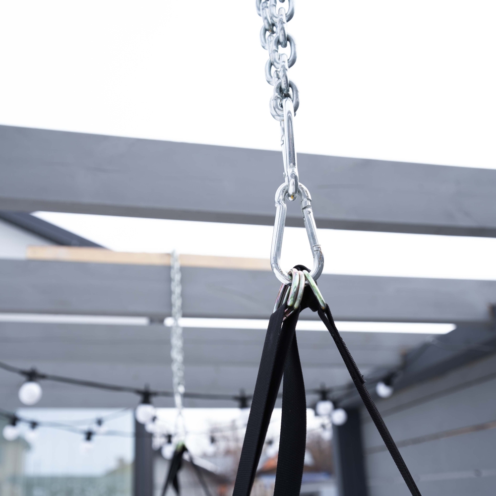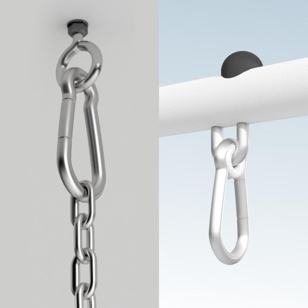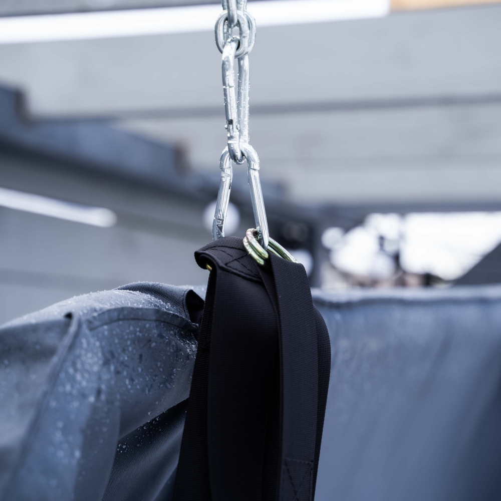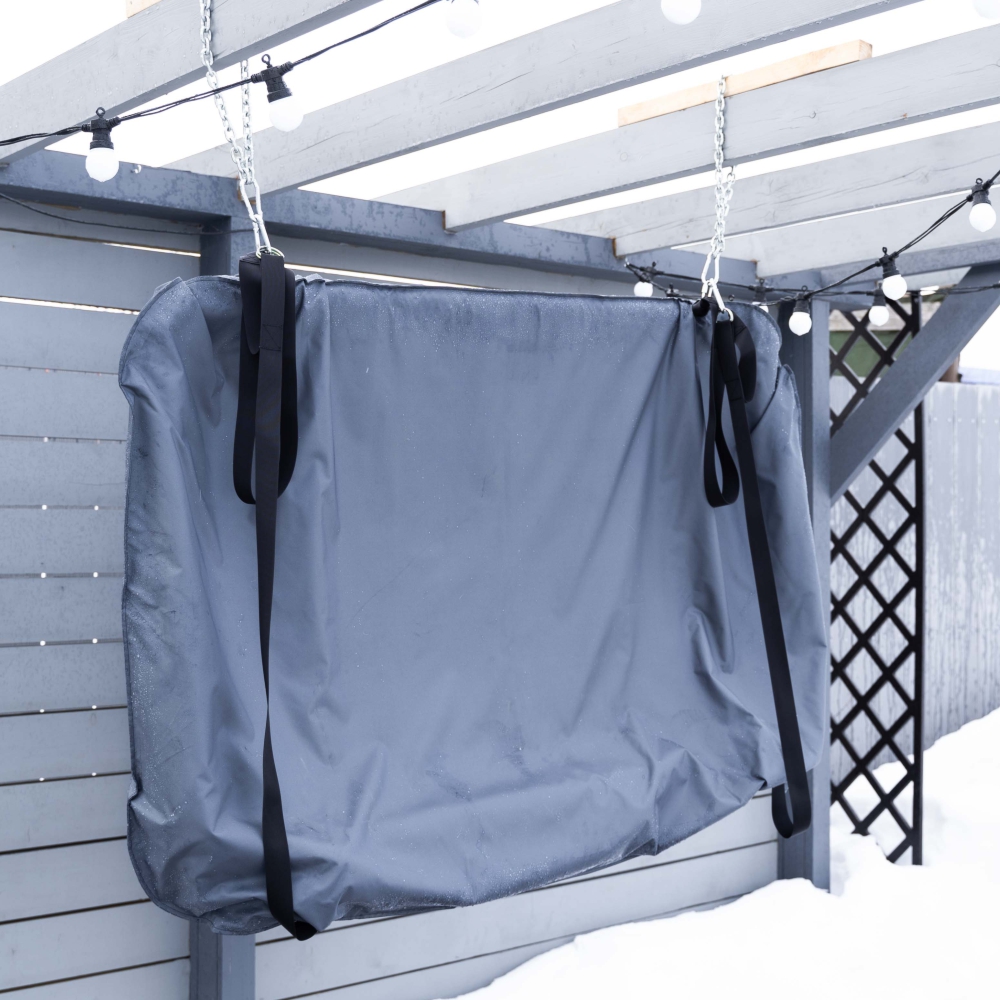 Система "антидождь": с помощью винтовых карабинов изделие фиксируется в вертикальном положении для предотвращения скопления осадков.
