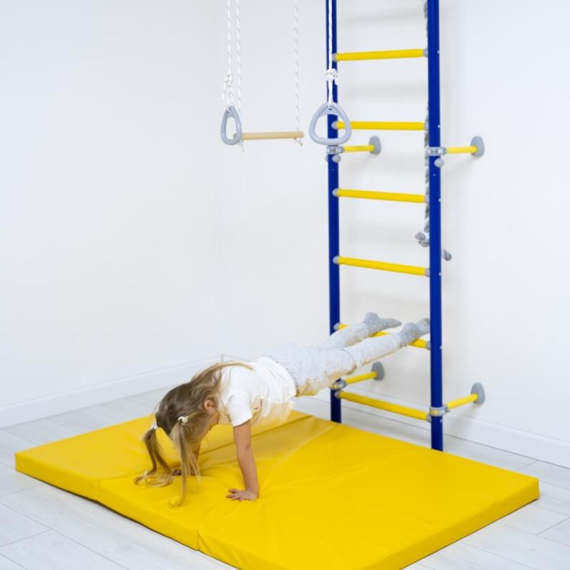 Параметры изделия: 1000*1500*60мм в разложенном виде, и 1000*500*180мм в собранном соответственно. Благодаря своим небольшим габаритам в сложенном виде, мат практичен в хранении и транспортировке. Габариты изделия позволяют создать безопасную зону во время занятий на шведской стенке. Мат подойдет для различных комплектаций спортивного комплекса, в том числе с навесным оборудованием (лестницами и кольцами), и с канатным лазом или скалолазом. Кроме того, габариты мягкого щита позволяют создать полноценный спортивный уголок для физической активности. Мягкий щит отлично подходит для выполнения упражнений, гимнастики, йоги, аэробики и др. Множество эффектных цветовых сочетаний позволят подобрать мат для любого интерьера. Однотонные маты представлены в двух универсальных цветах – сером и бежевом. Нежные оттенки деликатно дополнят интерьер. Сочные расцветки двусторонних матов добавят красок в обстановку комнаты. Особенностью двусторонних матов является разная расцветка для его сторон. Благодаря этому, поменять цвет мата очень просто – достаточно перевернуть мягкий щит на другую сторону.