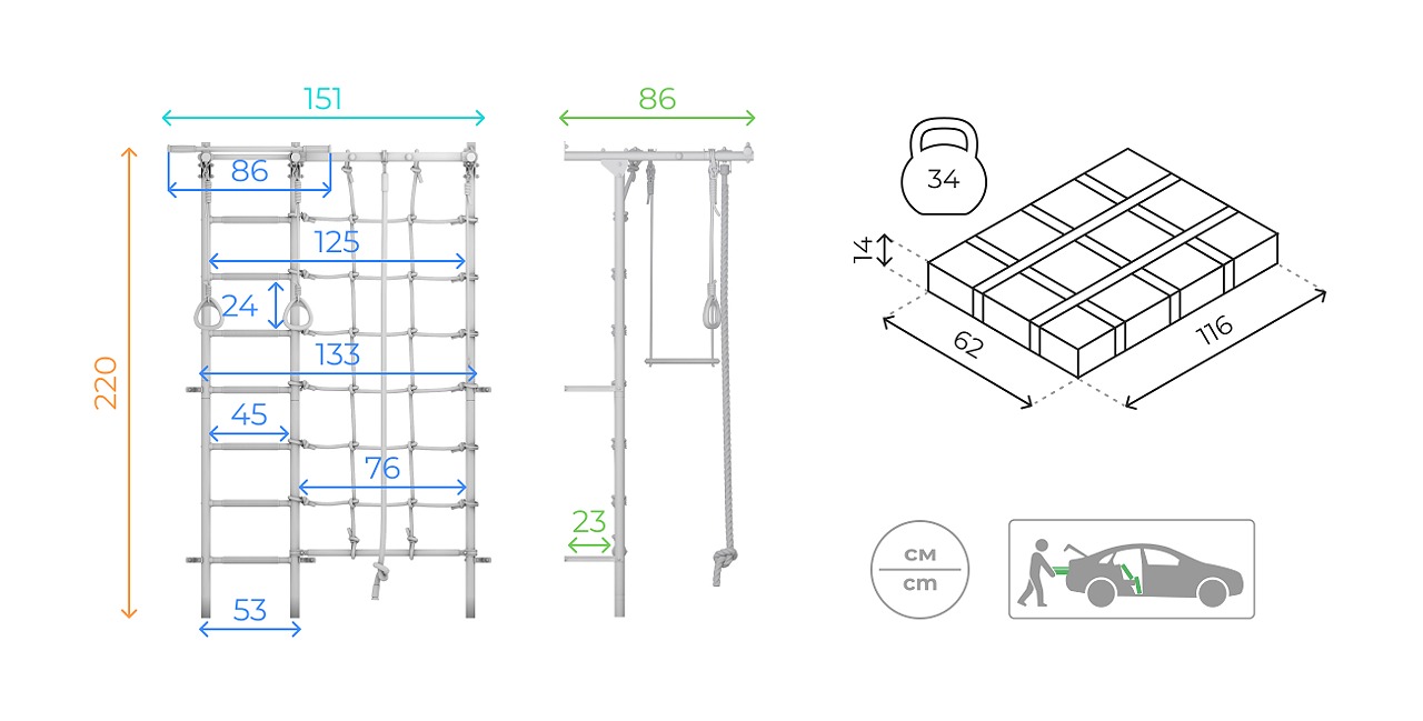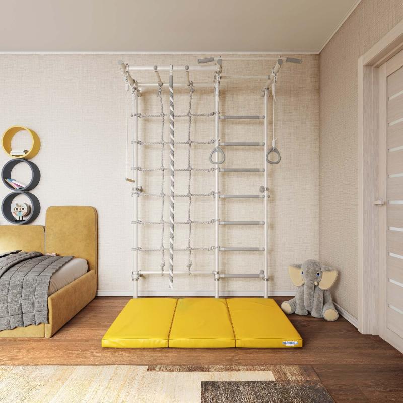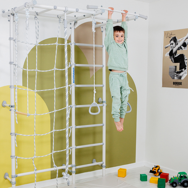 Основные преимущества этой шведской стенки включают удобную лестницу, расширенный комплект поставки (включая веревочный лаз, рукоход и турник) и универсальность использования. Турник жестко закреплен, что обеспечивает высокую прочность и позволяет выдерживать существенные нагрузки. Веревочный лаз и рукоход способствуют развитию ловкости и координации движений. Комплект также включает канат, кольца и трапецию, что расширяет возможности для спортивных занятий и игры. Легкая установка конструкции позволяет использовать ее в квартирах с любой площадью. Кроме того, шведская стенка доступна в нескольких цветовых решениях, что позволяет выбрать оптимальный вариант под ваш интерьер.
