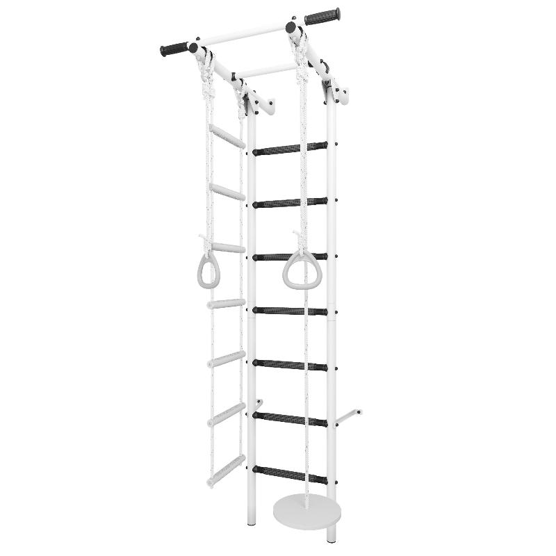 • расширенная комплектация (лестница гимнастическая и веревочная, неподвижный турник, подвес и гимнастические кольца);