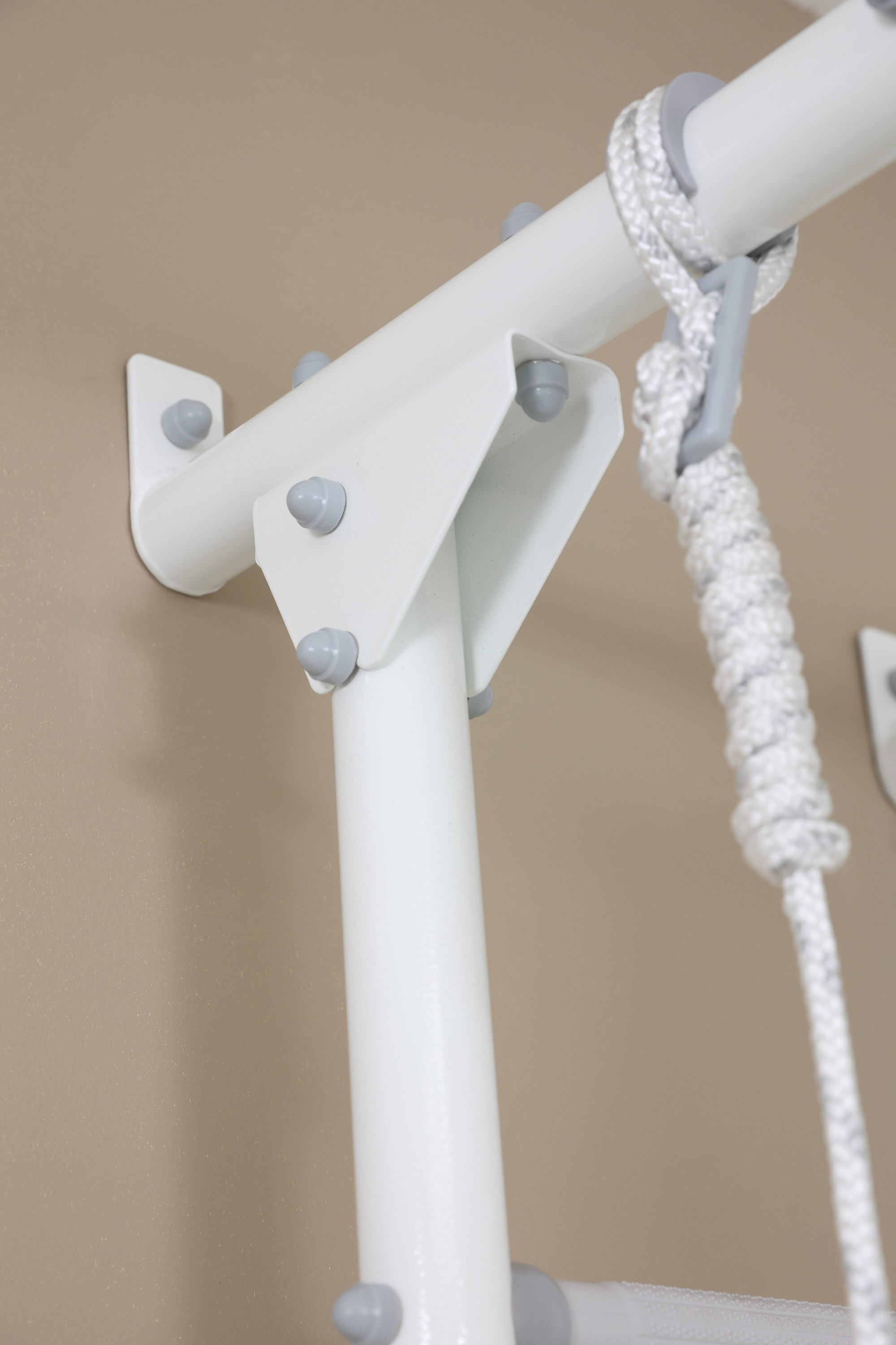 Ступени шведской стенки покрыты мягким рельефным пластиком для массажного эффекта и предотвращения соскальзывания рук и ног. Ступени с пластиковым покрытием всегда остаются комнатной температуры и тактильно приятны. Массажный эффект ступеней способствует профилактике и исправлению плоскостопия у детей.