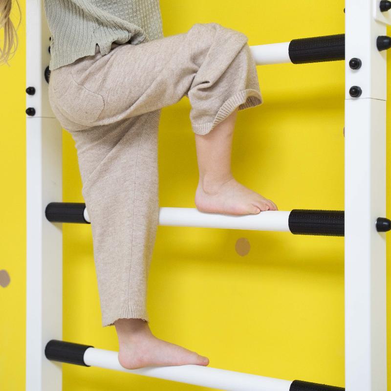В его арсенале - надежная шведская стенка и многофункциональный турник, который легко регулируется по высоте без лишних усилий. Турник 3 в 1 предлагает множество вариантов хвата и разнообразные упражнения для формирования всех групп мышц. Бережные резиновые накладки по бокам ступеней предотвращают повреждения покрытия во время регулировки высоты турника.