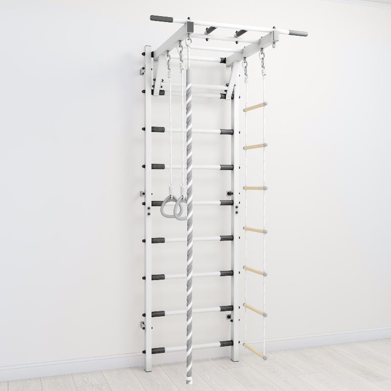 Для маленьких членов вашей семьи мы предусмотрели увлекательную веревочную лестницу и канат, эффективно укрепляющий мышцы рук, ног и спины. Комплект также дополнен гимнастическими кольцами, созданными специально для удобного хвата маленьких ручек, чтобы вовлечь их в увлекательный мир спорта.