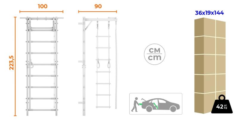 Наш комплекс изготовлен из экологически чистых и гипоаллергенных материалов, легко моющихся влажной безворсовой тканью. Каждый элемент обработан премиальной краской с матовой текстурой, которая не только придает изделию роскошный вид, но и обеспечивает приятное тактильное ощущение. С его элегантным дизайном, этот домашний комплекс легко впишется в любой интерьер. Монтаж и сборка производятся быстро и легко. Для дополнительной безопасности во время тренировок рекомендуется использовать мягкий защитный мат.