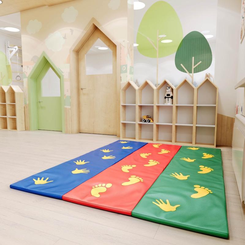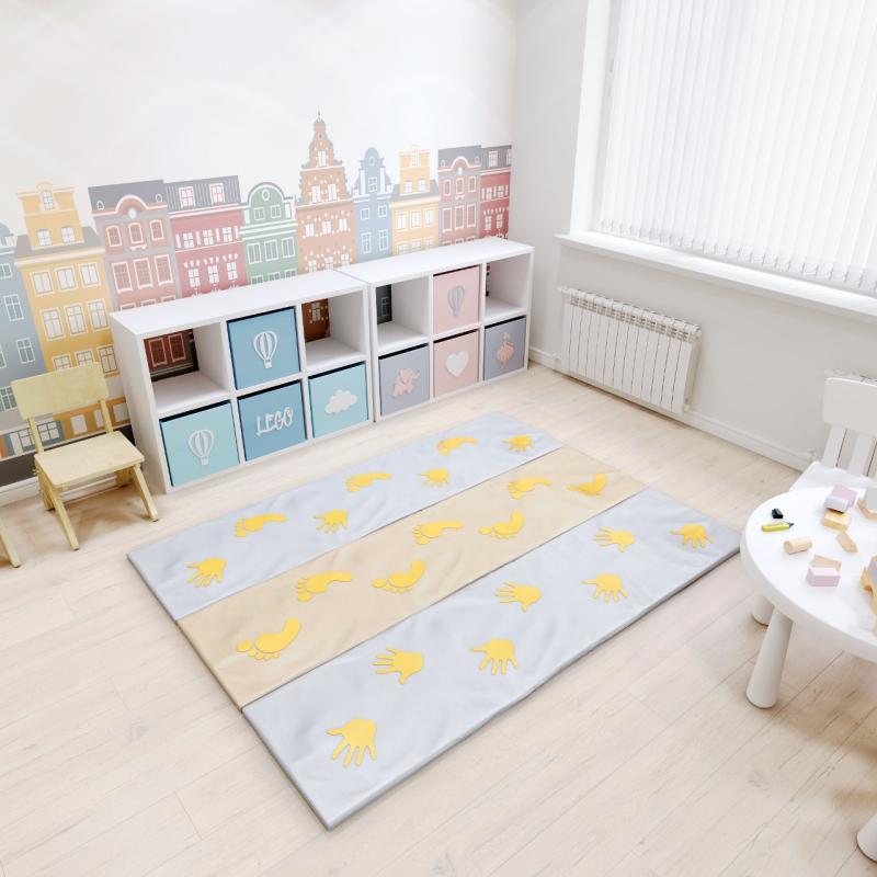 Коврик «Путаница» - это яркая трехцветная дорожка. На ее поверхности изображены ладошки и пяточки, на которые нужно наступать во время занятий. Коврик отлично развивает внимание и координацию движений, закрепляет зрительные навыки, укрепляет мышцы. Габаритные размеры: 2000 х 1500 мм. Допустимая нагрузка 50 кг. Вес с упаковкой 2,5 кг