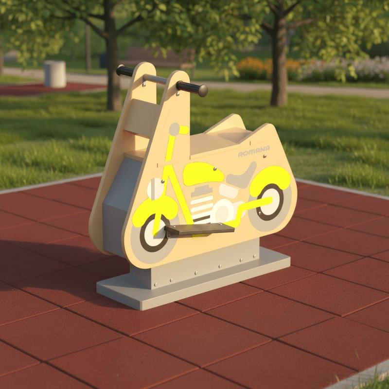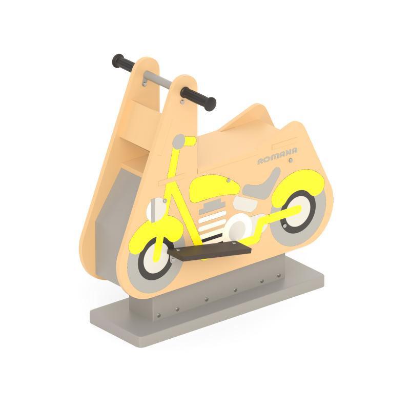 Качалка для тематических игр, предназначена для детей в возрасте от 2 лет. На фигурную вставку при помощи УФ-печати нанесено изображение в тематике «мотоцикл».