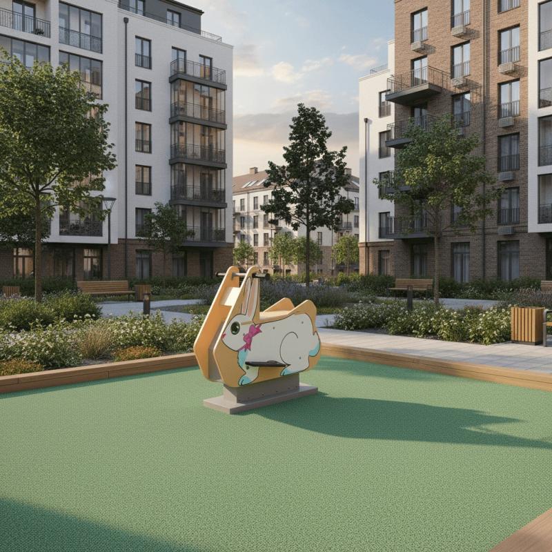 Качалка для тематических игр, предназначена для детей в возрасте от 2 лет. На фигурную вставку при помощи УФ-печати нанесено изображение в тематике «кролик».Конструкция качалки предоставляет возможность качаться пользователю по оси «вперед-назад». Изделие приходит в движение за счет переноса веса ребенка - совершения раскачивающих движений «назад-вперед». Платформа обеспечивает плавное легкое качание, без ударов и усилий.