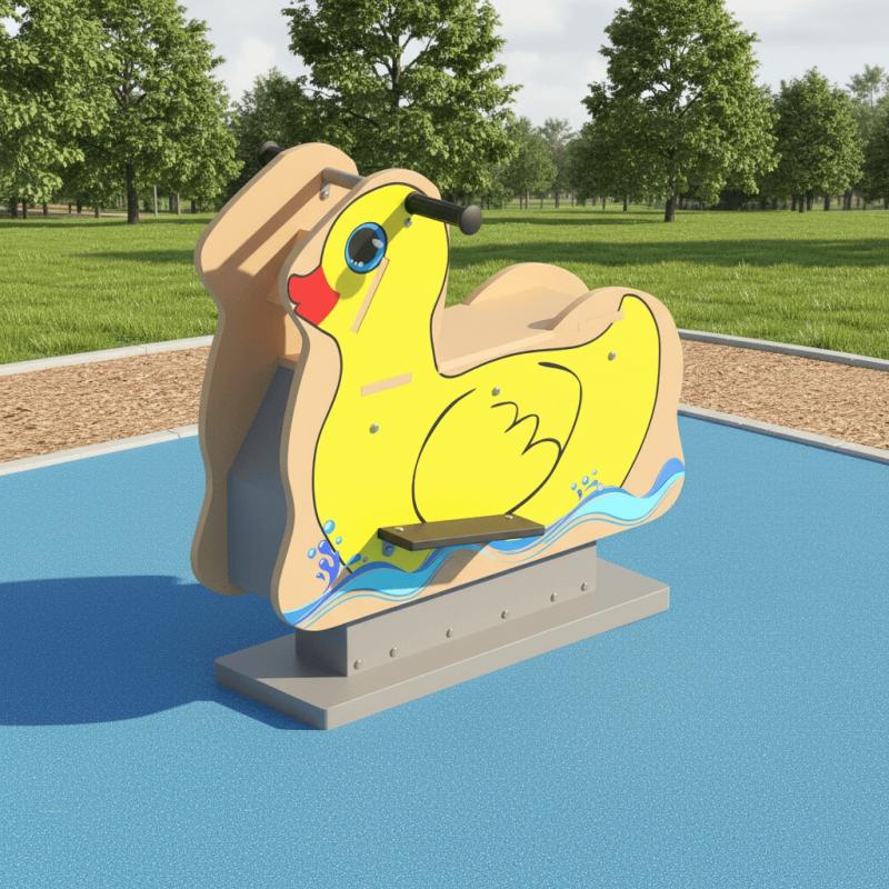 Качалка для тематических игр, предназначена для детей в возрасте от 2 лет. На фигурную вставку при помощи УФ-печати нанесено изображение в тематике «уточка».