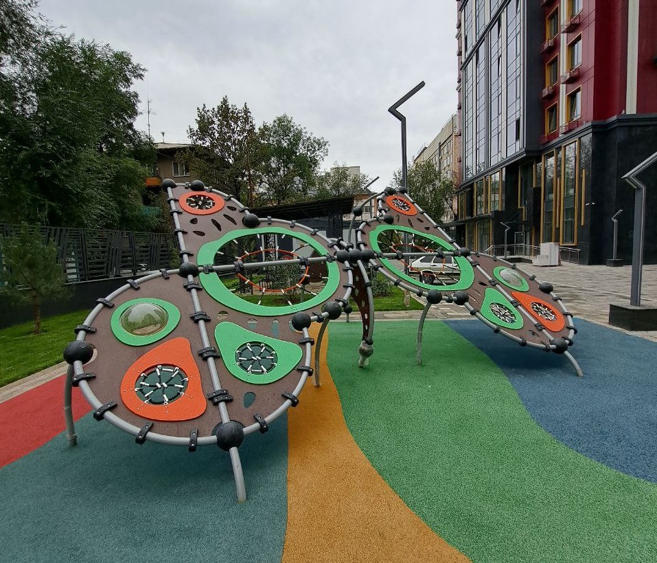 Каркас - сталь конструкционная, покрытие - цинкосодержащий грунт, окраска полимерным порошком. Панели - полипропилен/ПНД. Канатные сети, лазы - канат армированный 16 мм.