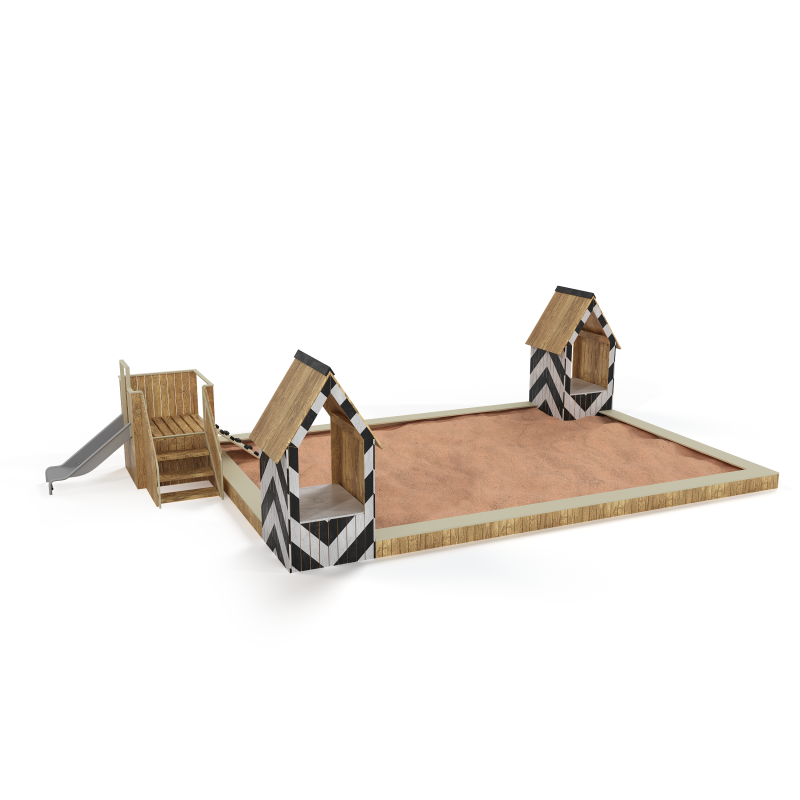 Каркас - металлопрокат сталь Ст3, покрытие - цинкосодержащий грунт, порошковая окраска (RAL по согласованию). Обшивка - древесина, покрытие - антисептик, масло террасное атмосферостойкое для древесины. Горка - сталь нержавеющая AISI 304 толщиной не менее 2 мм, шлифование и электрохимическая пассивация сварных швов. Панели - HPL.