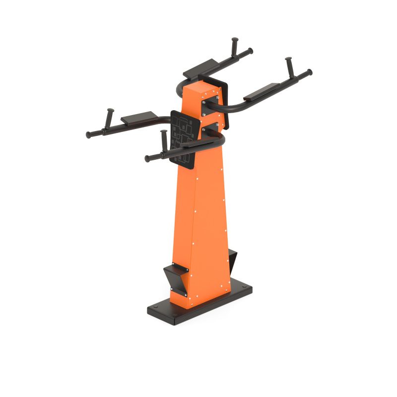 Уличный тренажёр Брусья предназначен для выполнения гимнастических и силовых упражнений на брусьях по укреплению мышц груди, бицепса и трицепса. В качестве нагрузки используется собственный вес занимающегося.Тренажер двухсторонний, разноуровневый, для одновременного выполнения упражнений двумя лицами.