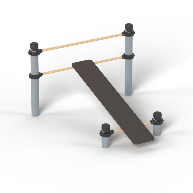 Спортивное оборудование - наклонная скамья для пресса входит в комплекс «Воркаут», наряду с другими спортивными элементами устанавливается на территориях игровых зон, зон отдыха, спортивных площадках для пользователей от 14 лет. Предназначено для доступных занятий физической культурой на свежем воздухе. Круглогодичное эксплуатирование.Изделие устанавливается на открытых уличных участках, находящихся под контролем ответственного лица – эксплуатанта. Установка должна проводится на ровной площадке, свободной от насаждений. Над зоной безопасности, должно быть свободное пространство, т.е над ней не должно быть ни веток, ни элементов других конструкций.